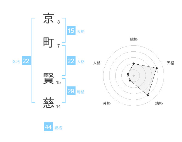 京町 賢慈さんの天格は15画の4点!