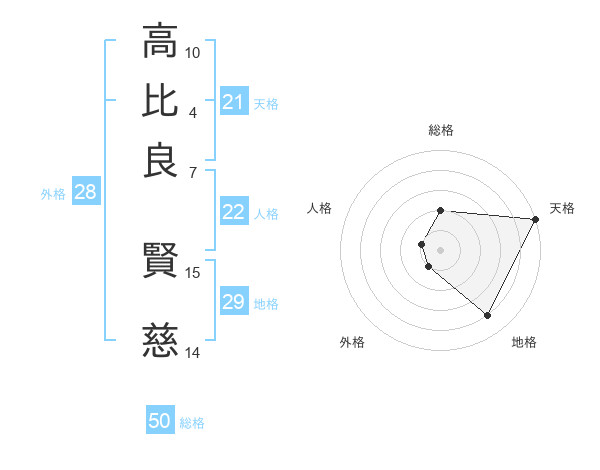 高比良 賢慈さんの総格は50画の2点!