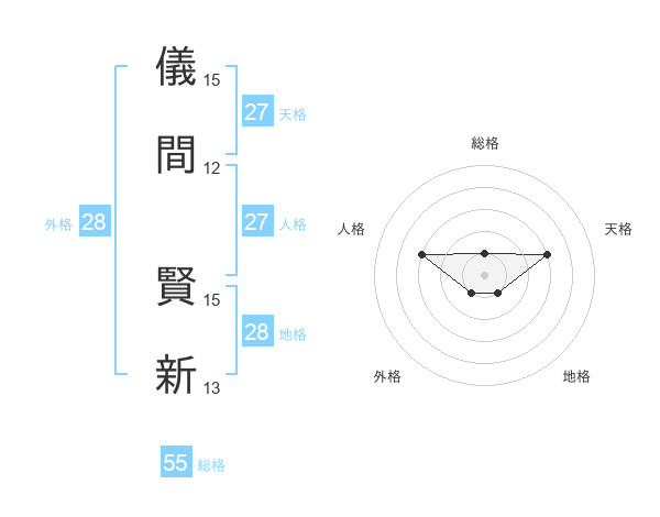 儀間 賢新さんを姓名の画数から五運を鑑定