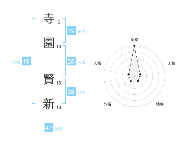 寺園 賢新さんの総格は47画の5点!