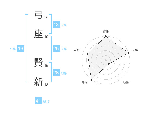 弓座 賢新さんを姓名の画数から五運を鑑定