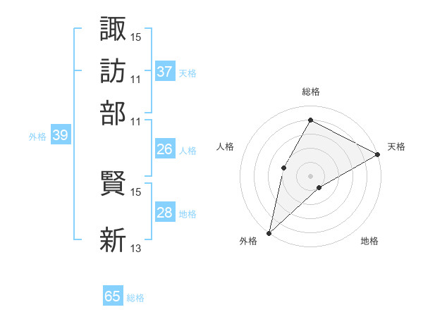 諏訪部 賢新さんの総格は65画の4点!