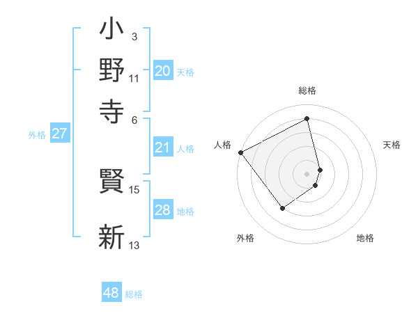 小野寺 賢新さんを姓名の画数から五運を鑑定