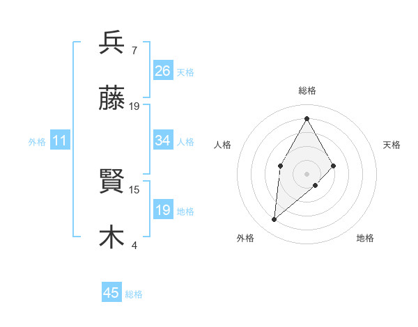 兵藤 賢木さんを姓名の画数から五運を鑑定