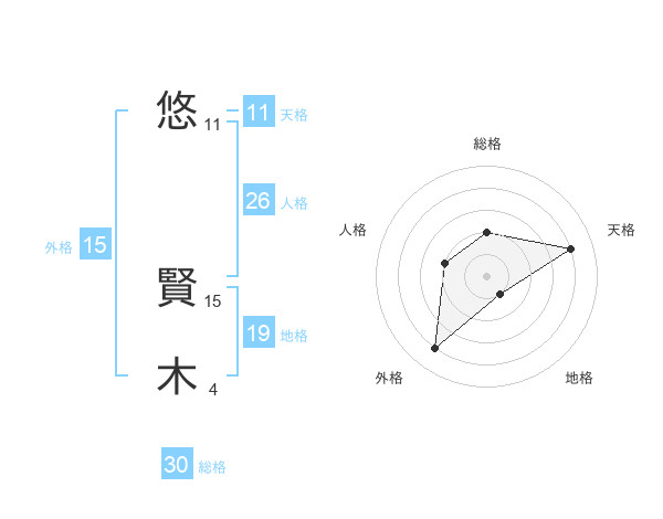 悠 賢木さんの天格は11画の4点!