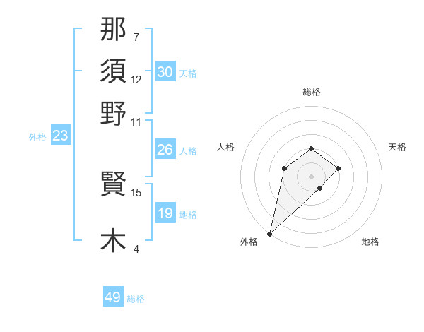 那須野 賢木さんを姓名の画数から五運を鑑定