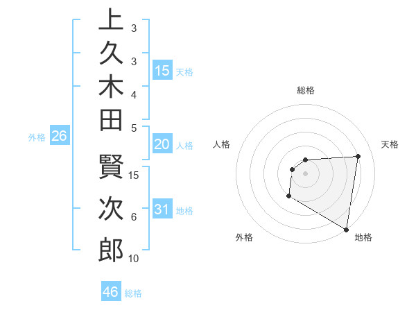 上久木田 賢次郎さんを姓名の画数から五運を鑑定