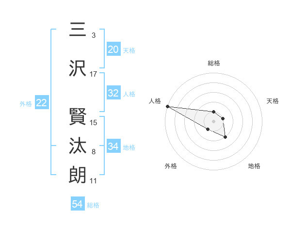 三沢 賢汰朗さんの外格は22画の1点!