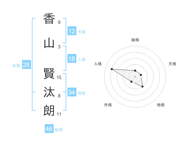 香山 賢汰朗さんを姓名の画数から五運を鑑定