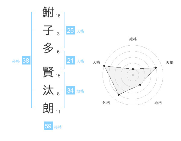 鮒子多 賢汰朗さんの総格は59画の1点!