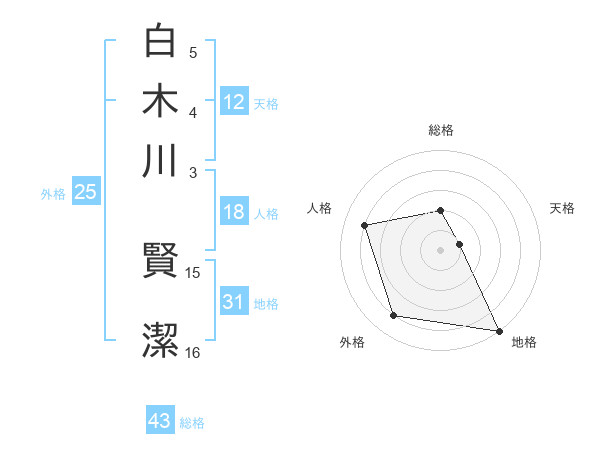 白木川 賢潔さんの総格は43画の2点!