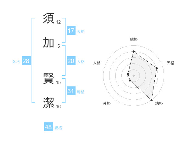 須加 賢潔さんを姓名の画数から五運を鑑定