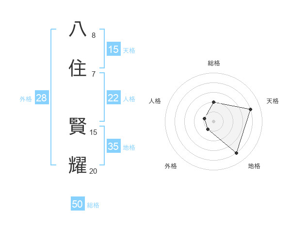 八住 賢耀さんを姓名の画数から五運を鑑定