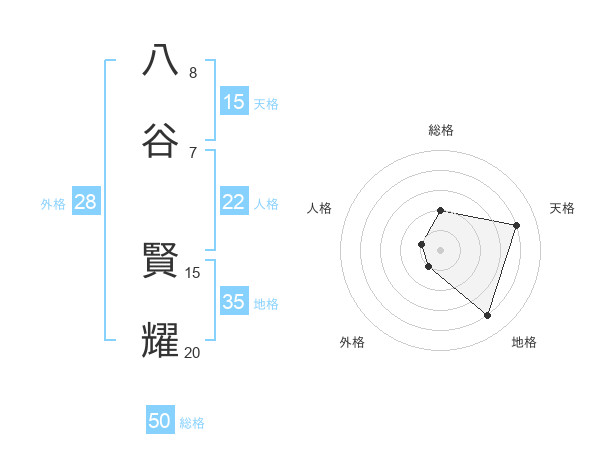 八谷 賢耀さんの総格は50画の2点!