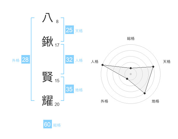 八鍬 賢耀さんの総格は60画の1点!