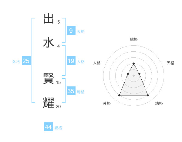 出水 賢耀さんの総格は44画の2点!