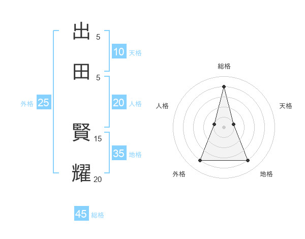 出田 賢耀さんの総格は45画の4点!