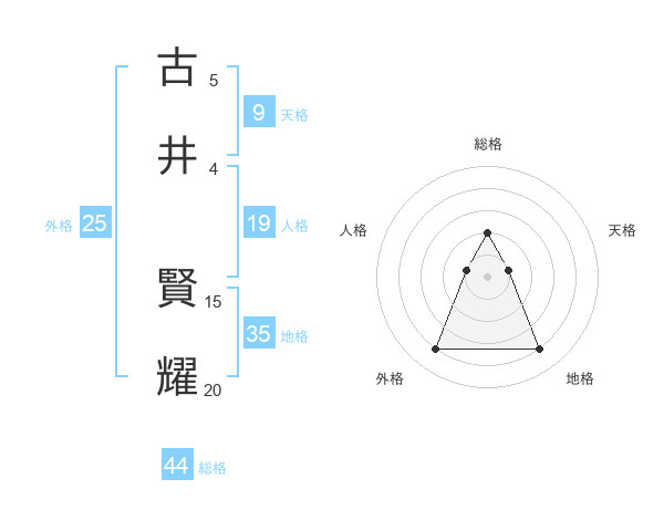 古井 賢耀さんの総格は44画の2点!