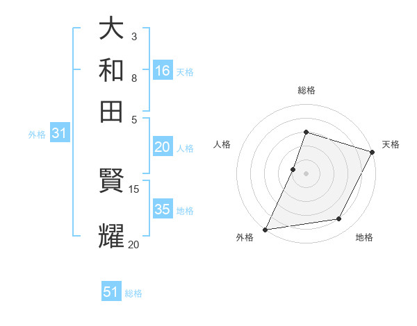 大和田 賢耀さんを姓名の画数から五運を鑑定