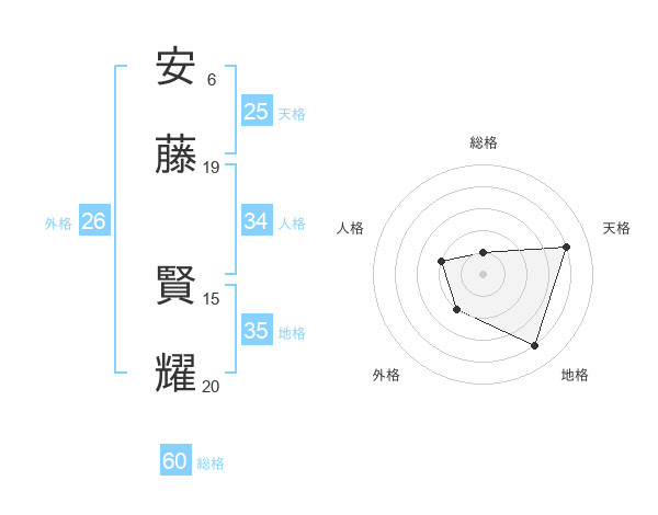 安藤 賢耀さんの総格は60画の1点!