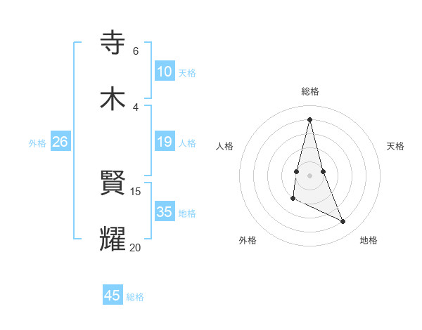寺木 賢耀さんを姓名の画数から五運を鑑定