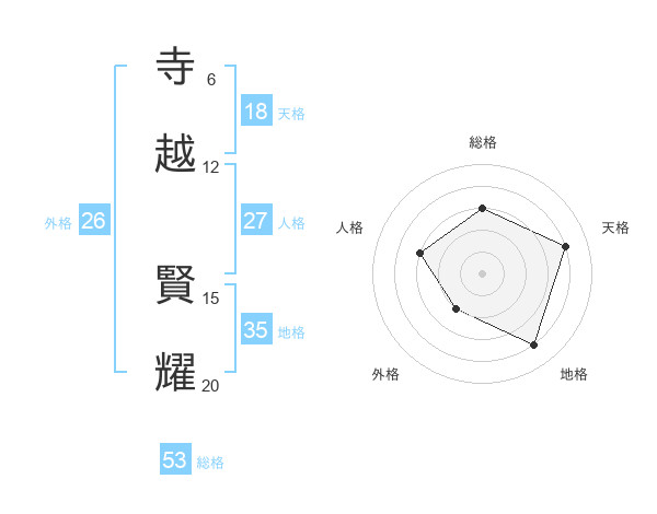 寺越 賢耀さんの総格は53画の3点!