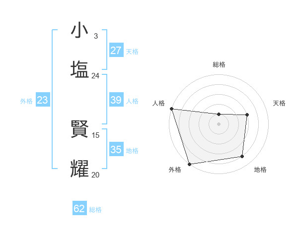 小塩 賢耀さんの外格は23画の5点!