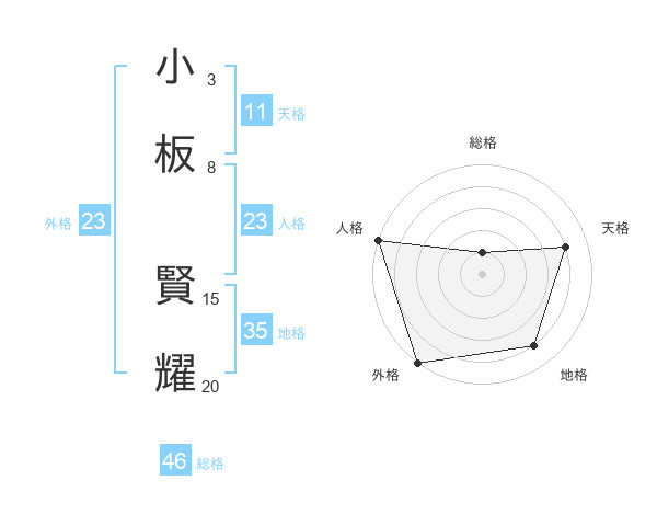 小板 賢耀さんを姓名の画数から五運を鑑定