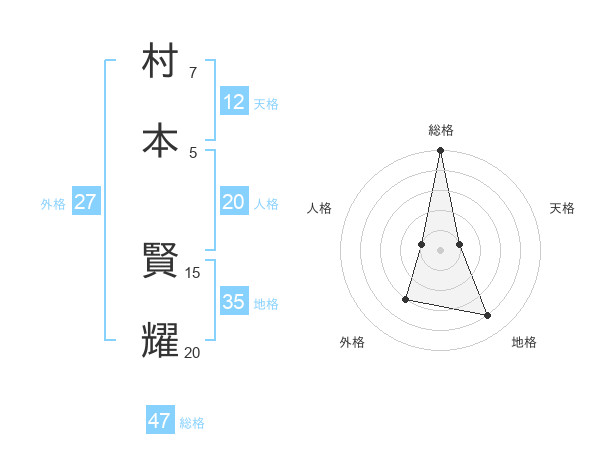 村本 賢耀さんの総格は47画の5点!