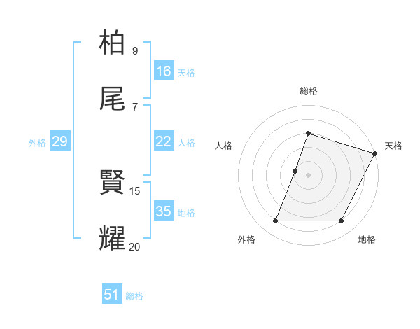 柏尾 賢耀さんを姓名の画数から五運を鑑定