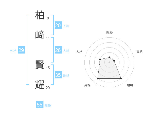 柏﨑 賢耀さんを姓名の画数から五運を鑑定