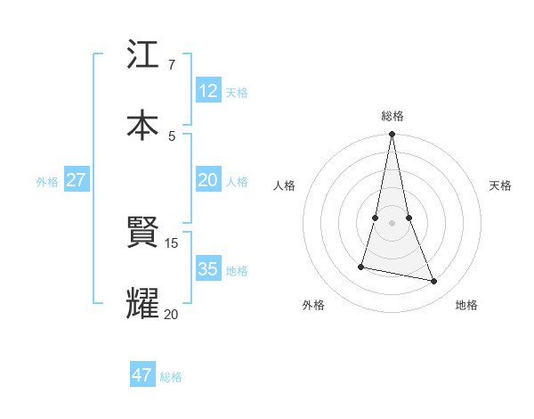 江本 賢耀さんを姓名の画数から五運を鑑定