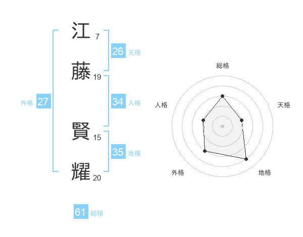 江藤 賢耀さんの総格は61画の3点!