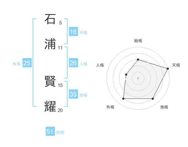 石浦 賢耀さんを姓名の画数から五運を鑑定