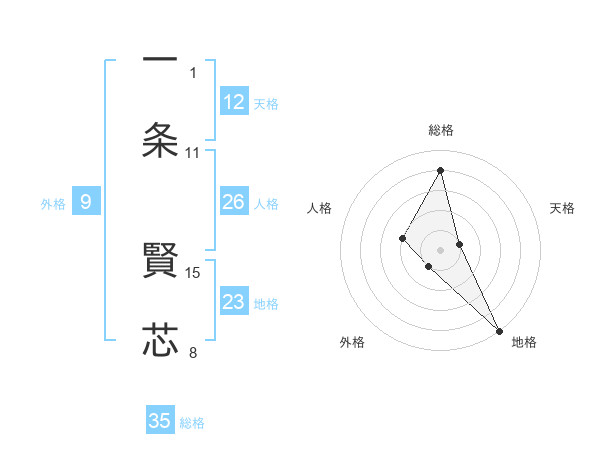 一条 賢芯さんの天格は12画の1点!