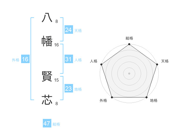 八幡 賢芯さんを姓名の画数から五運を鑑定