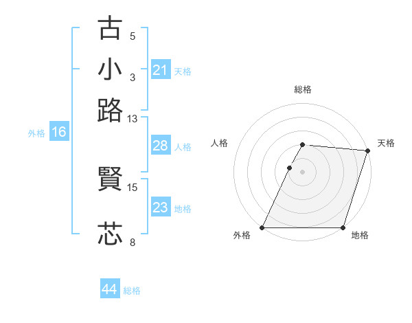 古小路 賢芯さんを姓名の画数から五運を鑑定