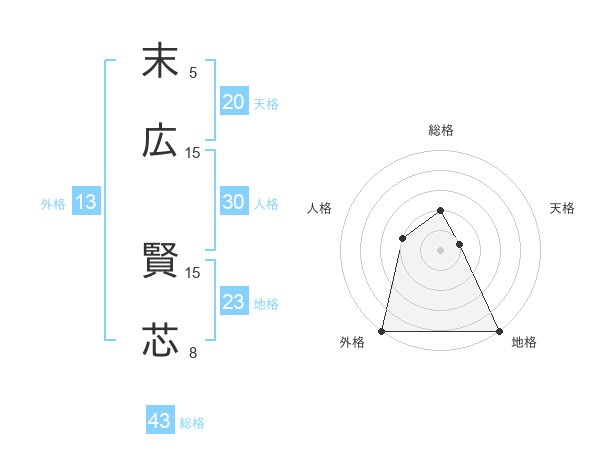 末広 賢芯さんの外格は13画の5点!