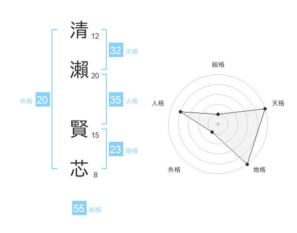 清瀨 賢芯さんを姓名の画数から五運を鑑定