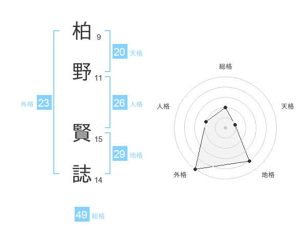 柏野 賢誌さんを姓名の画数から五運を鑑定