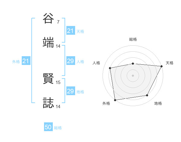谷端 賢誌さんの総格は50画の2点!