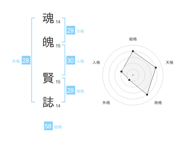 魂魄 賢誌さんの総格は58画の4点!