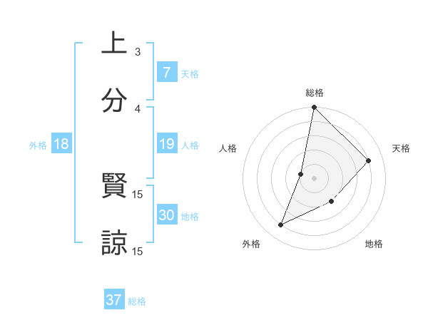 上分 賢諒さんの総格は37画の5点!