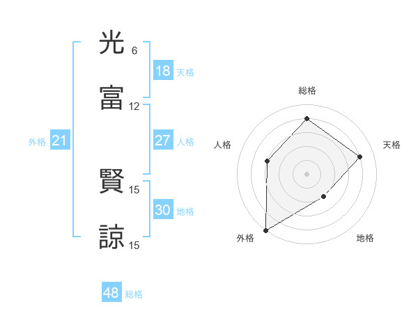 光富 賢諒さんの総格は48画の4点!