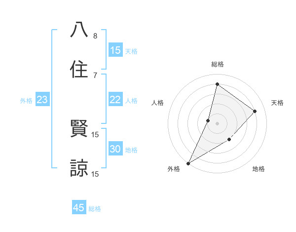 八住 賢諒さんを姓名の画数から五運を鑑定