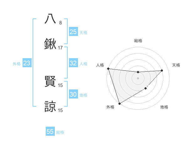 八鍬 賢諒さんを姓名の画数から五運を鑑定