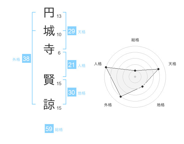 円城寺 賢諒さんの総格は59画の1点!