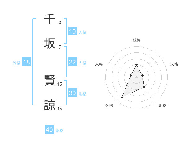 千坂 賢諒さんを姓名の画数から五運を鑑定