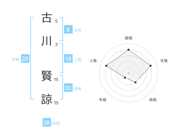 古川 賢諒さんを姓名の画数から五運を鑑定