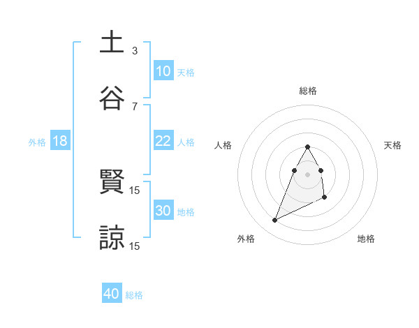土谷 賢諒さんを姓名の画数から五運を鑑定